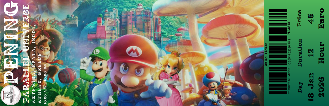 Your Exclusive Child 1-Day Single Ticket (Ages 3–11) grants unlimited access to all 35+ rides*, 50+ attractions, and 12 immersive Genre Realms on Opening Day: January 18, 2026 only.